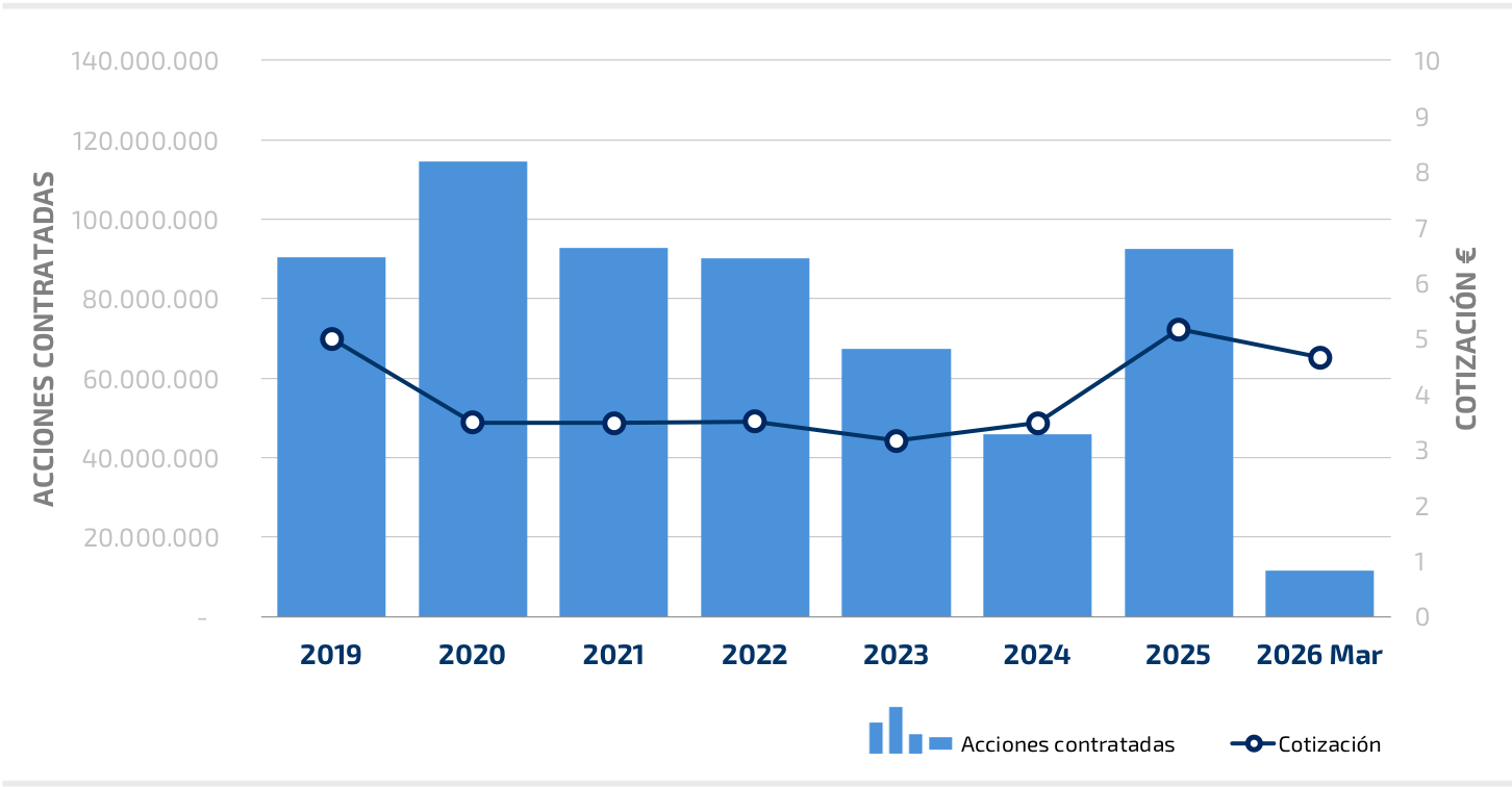 | Acciones contratadas (acumuladas) | 11.468.525 | 92.485.790 | 45.886.546 | 67.466.179 | 90.268.467 |